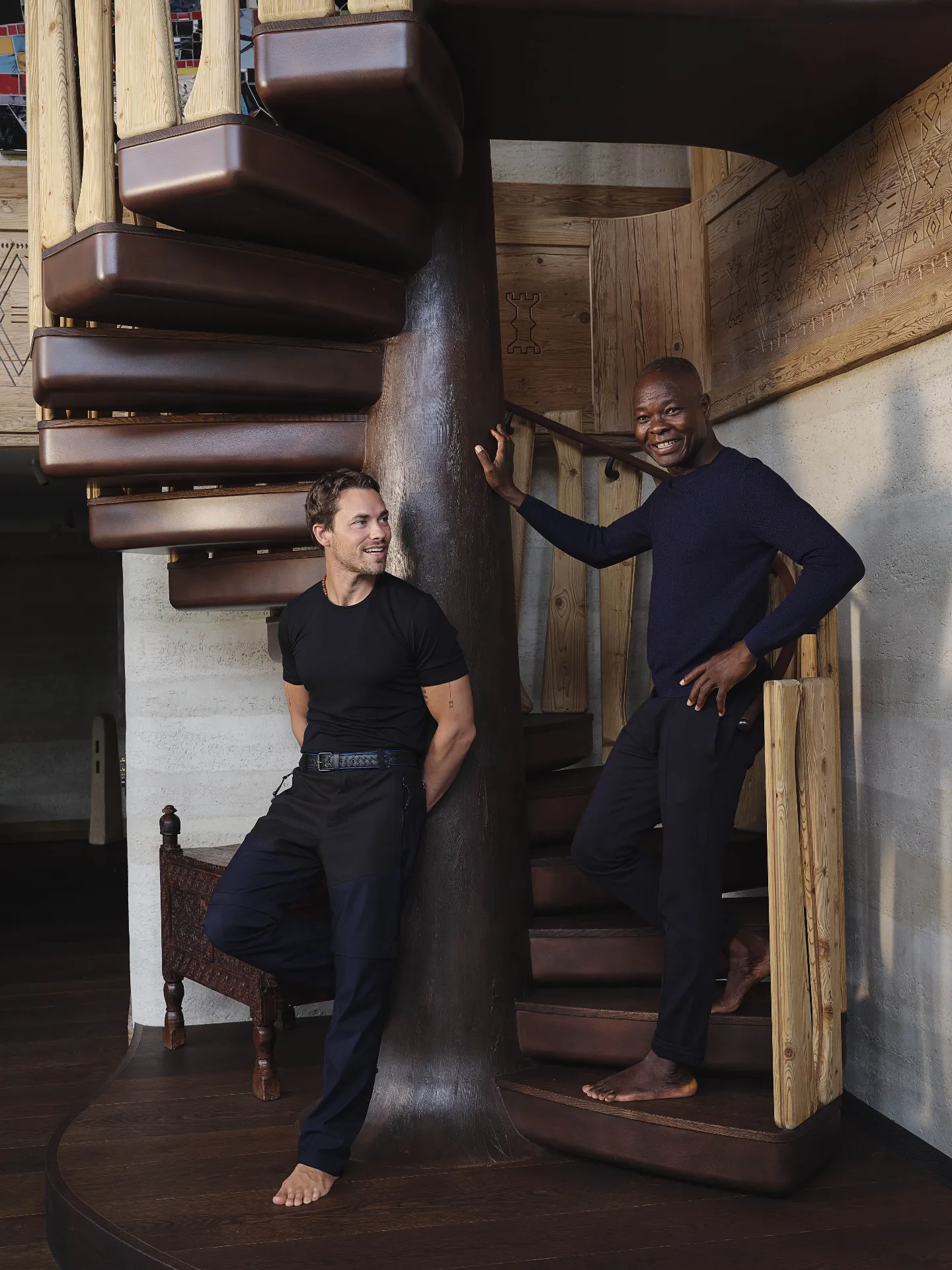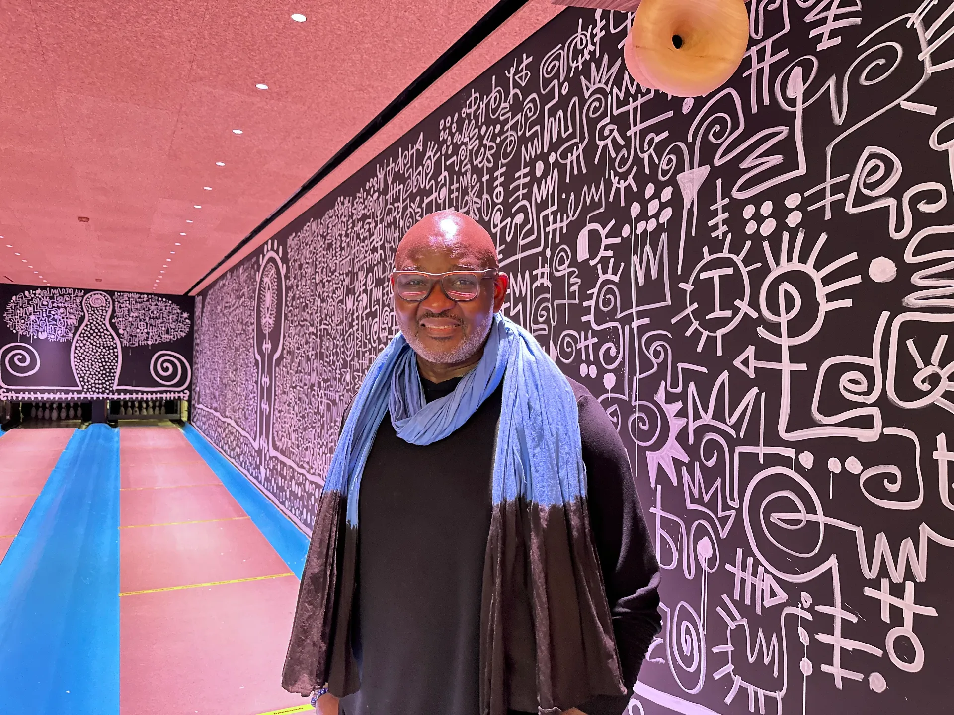 The collaboration between artist Victor Ekpuk and creative entrepreneur Nachson Mimram resulted in a stunning fusion of West African visual heritage and Swiss alpine luxury. Located within Mimram’s ""Africa Chalet"" in Gstaad, the project features a site-specific, immersive installation that transforms a private, state-of-the-art bowling alley into a total work of art. By enveloping the recreational space in his signature graphic style, Ekpuk bridges the gap between high-tech modern architecture and ancient cultural narratives.