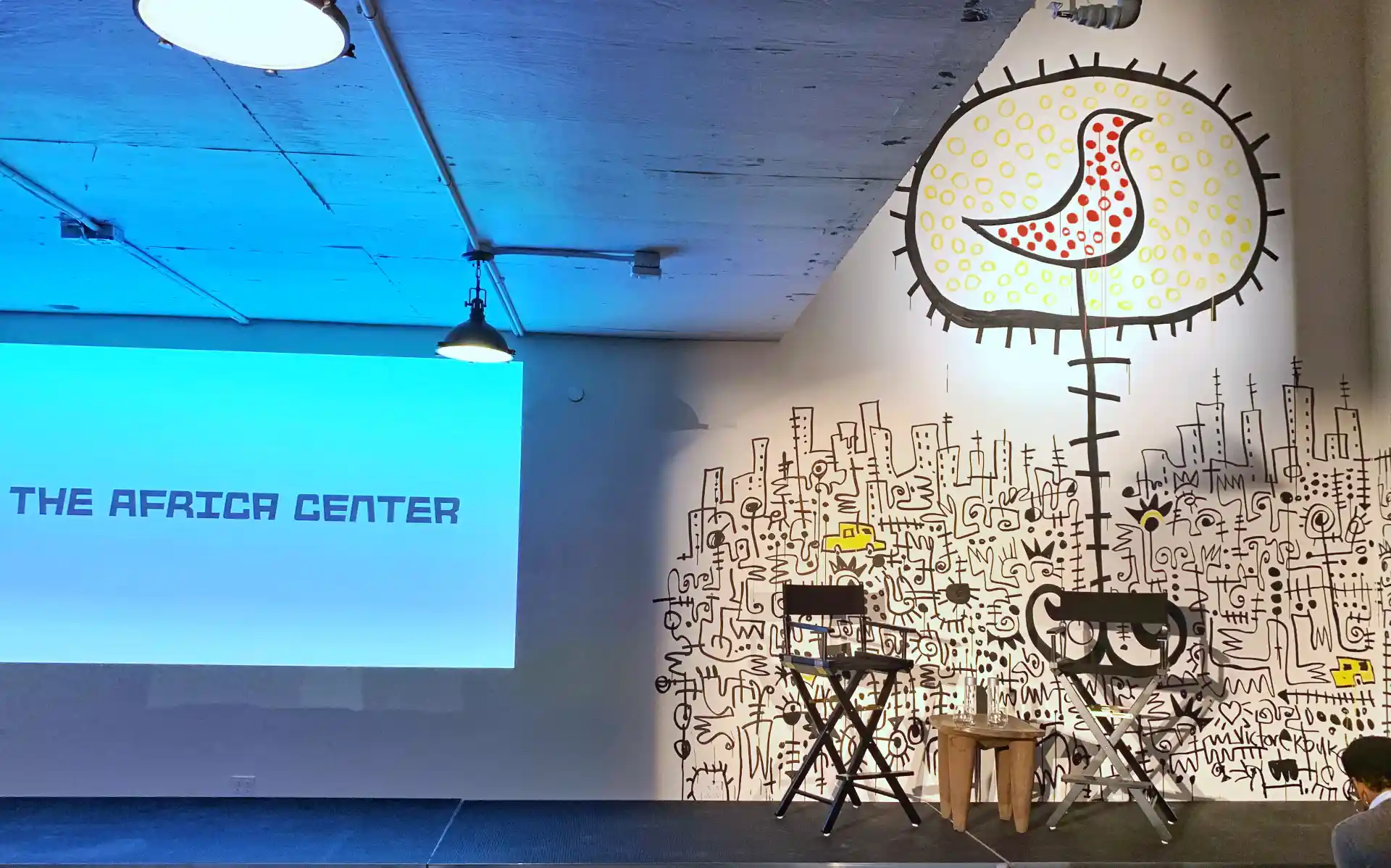 “Harlem Sunrise”,a mural installation The Africa Center in New York City to mark the opening of its newly renovated cultural space.