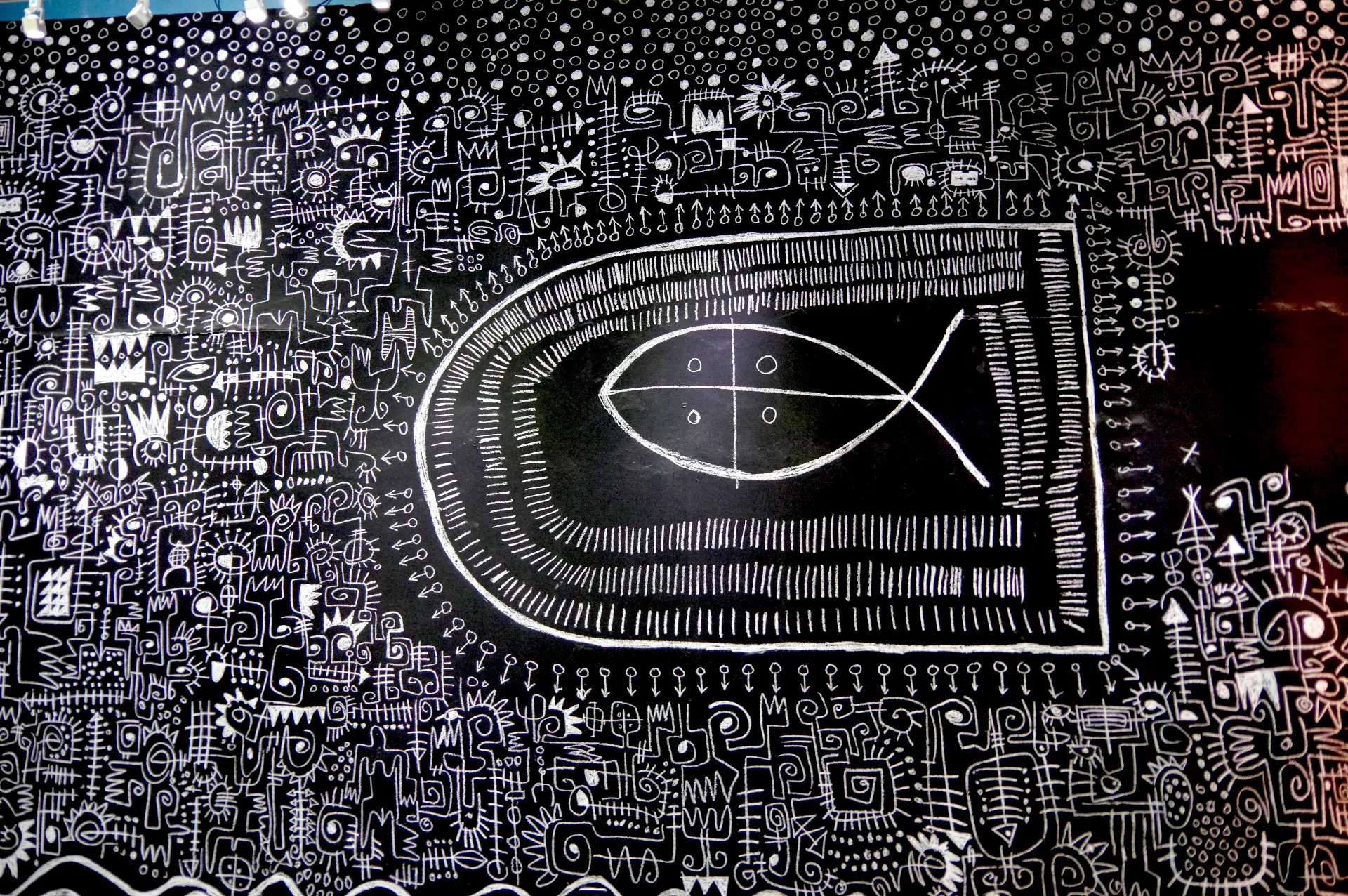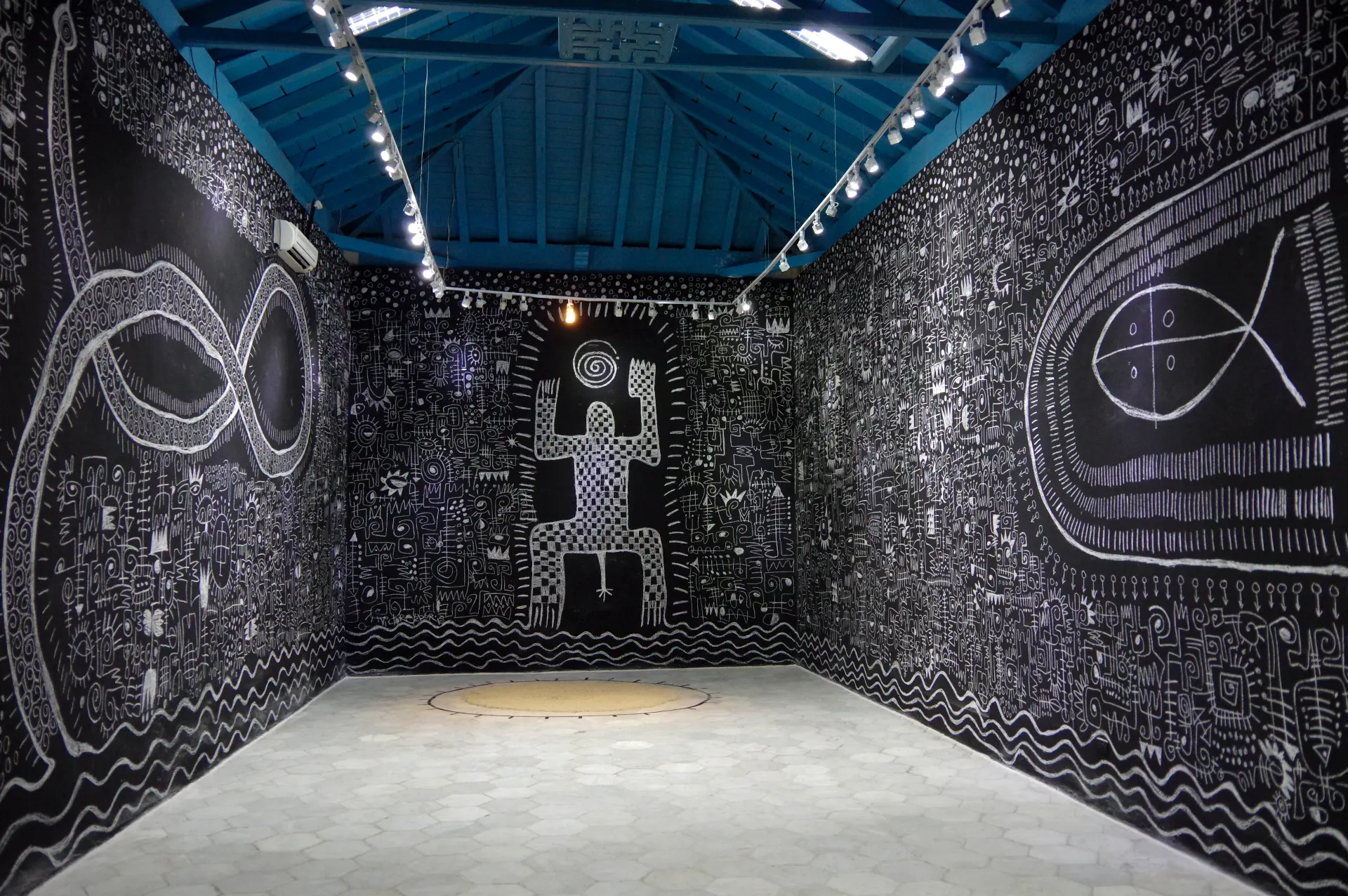 The work honors those protected by the spirit of Ekpe during the Middle Passage—those whose ancestral memories were erased only on the surface, but for whom the siren call of the Tanze (the sacred fish) and the roar of the leopard still resonate across the ocean. Ultimately, the drawing was intended to be erased or altered by others, serving as a metaphor for identity: a condition constantly reshaped and redefined by the tides of history.