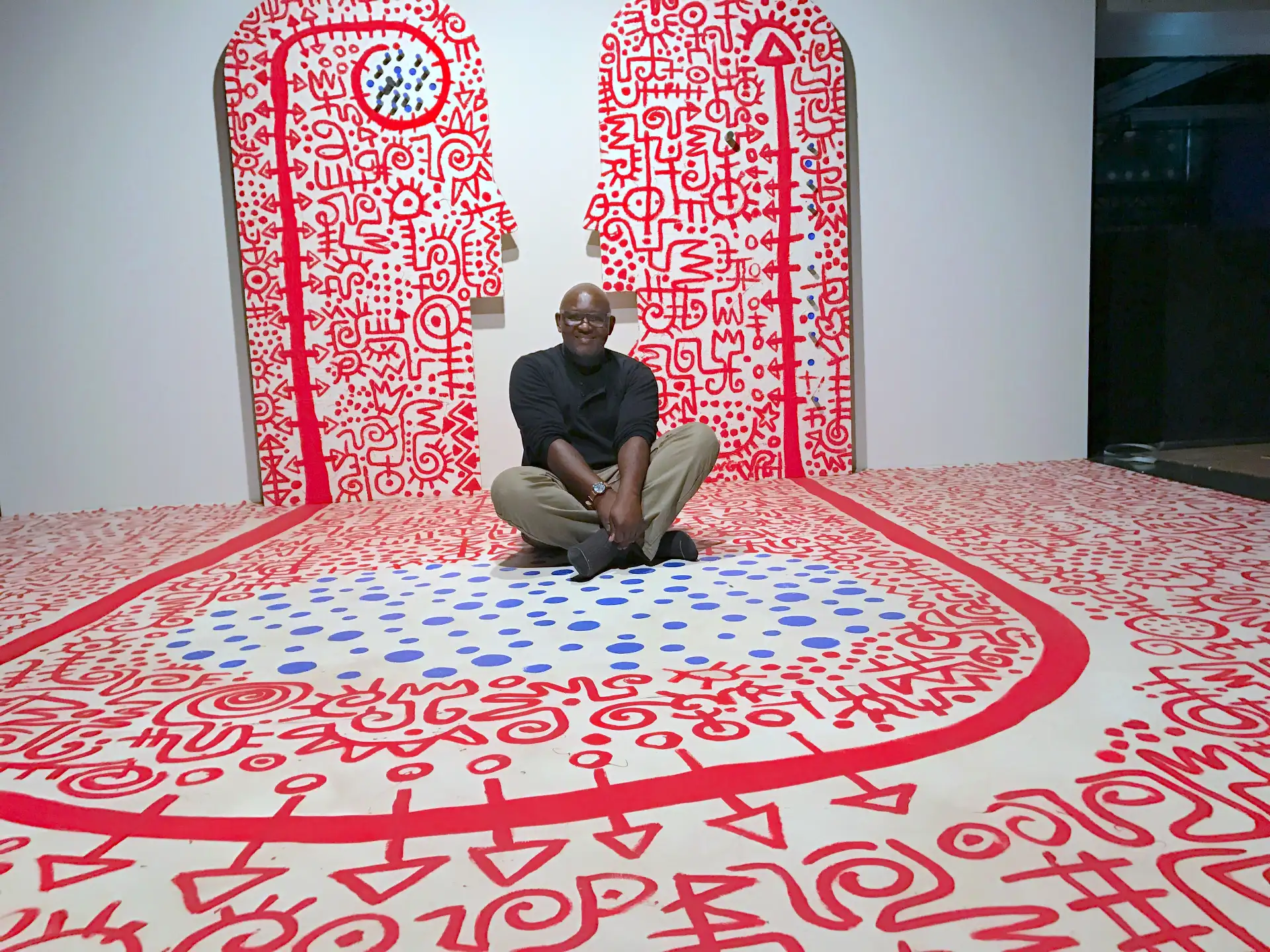 "State of Beings-TOTEM, c.2013, acrylic polymer on wood and vinyl. Created at Fondation Blachere, Apt France.